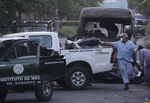 Un investigador de la Fiscalía describe con espanto el cuerpo de una bebé de siete meses y el de su madre. Ahí dentro encontraron un biberón, un atado de pupusas -que serían la cena de alguien-, mochilas, cuadernos, canastos con verduras. Todo calcinado, todo muerto. 15 heridos están repartidos en varios hospitales, cuatro con quemaduras suficientes para matar, agarrándose de la poca vida que les quedó; hay varios niños lesionados, entre ellos dos chicas de 9 y 12 años, que se recuperan en el hospital Bloom, y también su madre, que agoniza en el Hospital Rosales.
