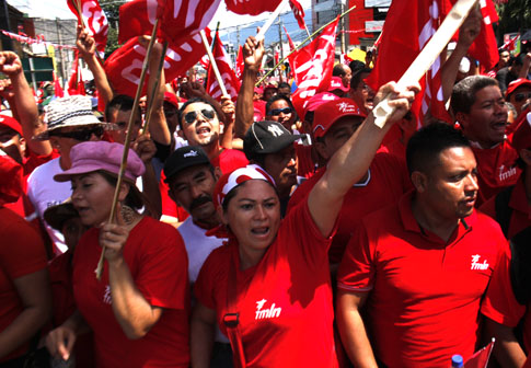 La cohesión estaba representada en las tres sillas dispuestas al frente de la tarima. Ahí estaban Merino, el hombre detrás de toda la movilización de simpatizantes; Medardo González y Salvador Sánchez Cerén, el vicepresidente de la República. La terna que, en teoría, lidera al FMLN y que mide sus propias fuerzas en las elecciones internas del partido, que culminarán a finales de mes con la elección de una nueva dirección. Atrás de ellos, el resto de invitados especiales: miembros del gabinete, diputados, alcaldes y representantes de gobiernos afines al FMLN, entre ellos, Nicaragua, Cuba y Venezuela.