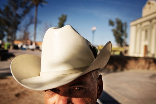 Doña Baubelia nos recibe con recelo. Es conocido que sus hijos son coyotes, y por lo general los periodistas no somos de su agrado. Al poco tiempo, aparece Pancho Fajardo. Estaba trabajando en su tractor. Campechano, de 61 años, de complexión recia. Todo el prototipo de un ranchero. Lleva 35 años en este ejido de 30 casitas que fue fundado en 1979 gracias a incentivos agrícolas que trajeron a los que lo habitan a cultivar trigo y alfalfa. Pero esos fueron otros tiempos. Ahora, la mayoría vive de pasar migrantes. Otros, como dicen aquí como guiño de obviedad, viven de “quién sabe qué y mejor no preguntarles”. Y los que menos, como Pancho, sobreviven de sus vacas.