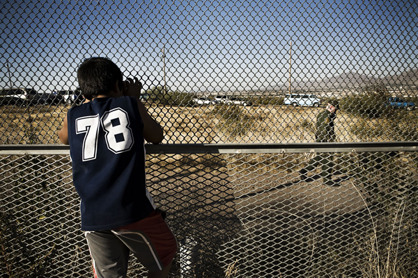 En Anapra, frente a la valla, me dediqué a seguir a un patrullero que caminaba por el lado norteamericano. Le tomé fotografías a escasos 3 metros, disfrutando de la ventaja (una de las pocas que tiene) que me otorgaba estar a este lado de la línea. En ese momento, el patrullero me habló: “Es terrible esta valla para tomar fotos”, soltó en un español fluido, pero con el inconfundible acento norteamericano. Se presentó como agente Jones y me contó que él, a menudo en su tiempo libre, paseaba por ahí y le tomaba fotografias a los niños que jugaban en el camino de Anapra. Se quejaba de que sus imágenes siempre quedaban filtradas por los alambres trenzados. Hablamos de la luz, que es mejor en la mañana si se está fotografiando desde el lado estadounidense y en la tarde si se hace desde el mexicano. Luego nos despedimos. Nos hubiéramos dado la mano, pero la reja lo impide.