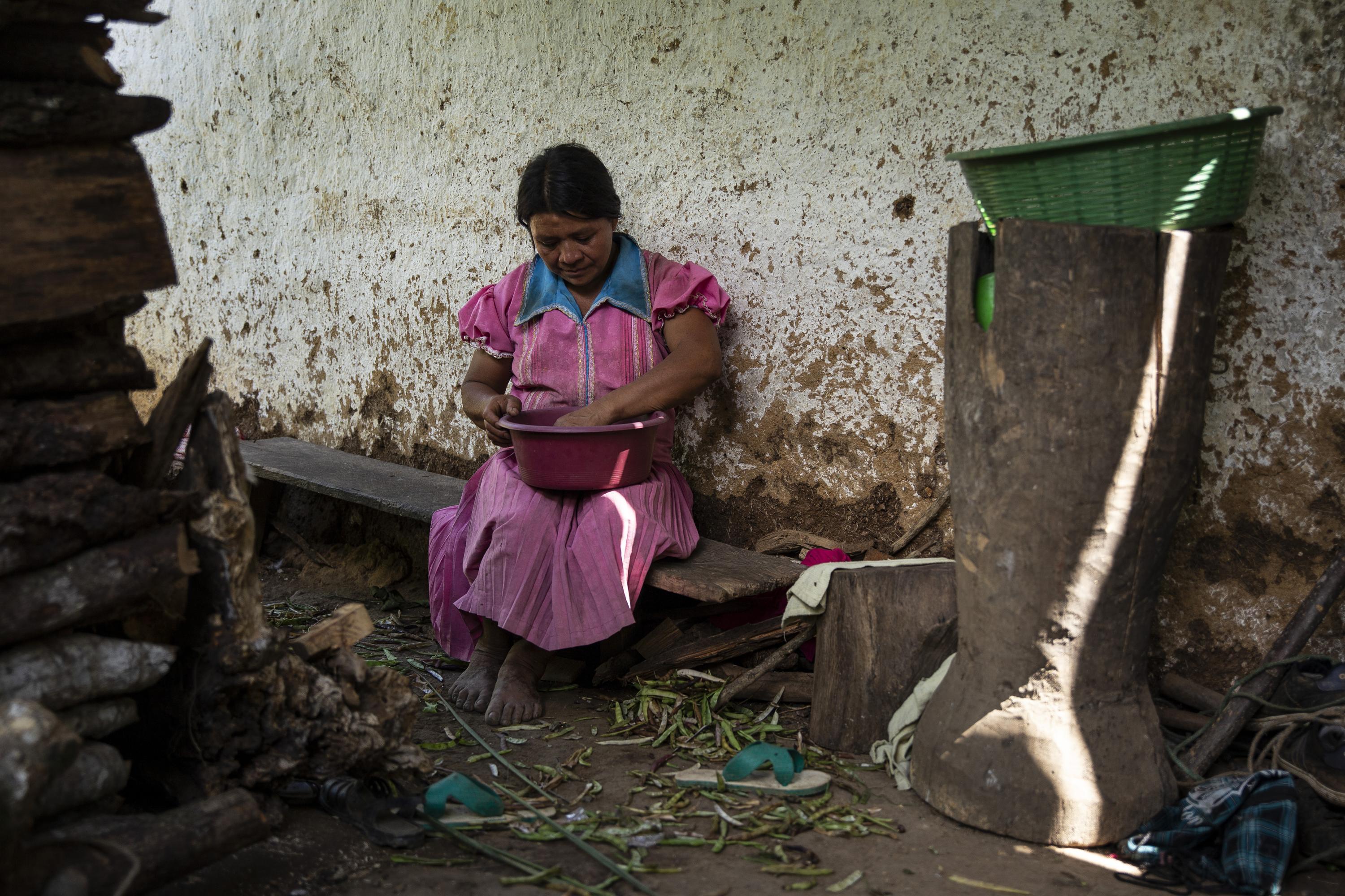 Brenda and her three children walk through the mountains to the community kitchen. Chon climbs a hill carrying a quintal of corn —more than 200 pounds— on his back. Rita returns from home after harvesting corn to feed her seven children. A group of women dig at a wall of earth to expand the school’s classrooms. Roberta searches for guanábana leaves to treat her diabetes. Such is everyday life in La Ceiba Talquezal and Pitahaya, two remote Maya Ch’orti communities in the municipalities of Jocotán and Camotán, in Chiquimula, the department with the highest rates of chronic child malnutrition in Guatemala — in turn, the country with the highest malnutrition rates in Latin America, according to a UNICEF report on child malnutrition in Latin America and the Caribbean.