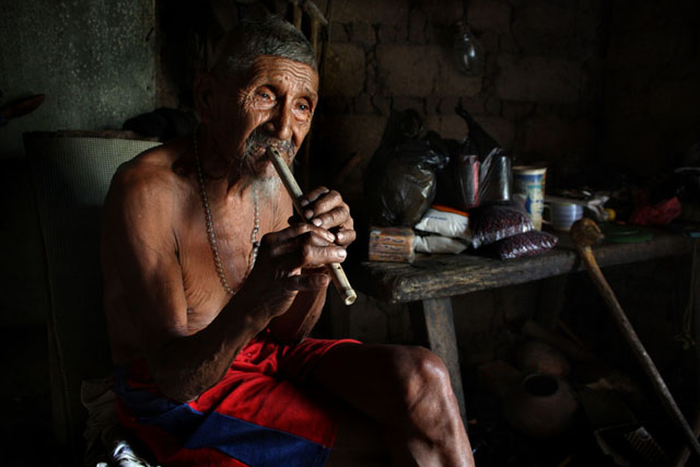 Quizás por eso esta mañana Chelino habla del dolor en sus riñones o del fuego que dice sentir cuando hace pipí. Chelino habla de las últimas lluvias, o de su última visita al pueblo para comprar comida, o del riachuelo que pasa al lado de su casa donde se baña -no todos los días- y que le sirve para llenar sus botellas.