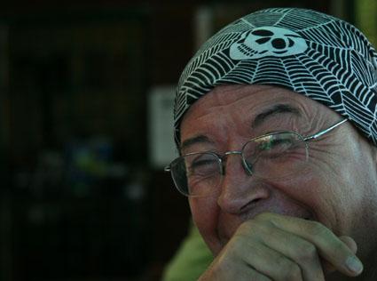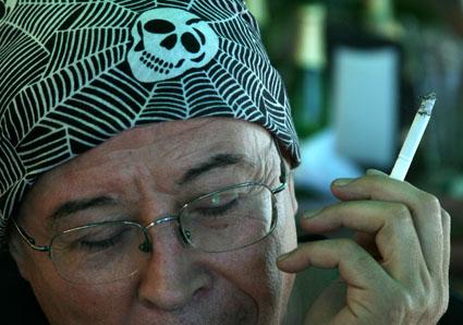 Accede sentarse junto a El Faro pero no disimula la pose altiva, rebelde, la pose del escritor al que le da haraganería hablar sobre su vida con los periodistas, a quienes considera tontos. No comerá nada. Con unos rones y cola está servido. Al fin, sonríe y bromea.