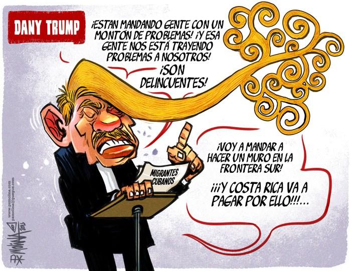 El sentido común sugiere que deberíamos esperar una rectificación, pero eso no ocurrirá hasta que en Nicaragua se produzca un cambio político democrático. Vienen, por lo tanto, tiempos peores con la misma retórica altisonante de Ortega, librando 'batallas' contra sus enemigos. Pero al menos nos queda como consuelo que en temas de derechos de migrantes la demagogia de Ortega ha llegado a su fin. El caricaturista de Confidencial Pedro X. Molina inmortalizó al Comandante en una viñeta titulada Dany-Trump, fusión de ambos personajes, en la que el imperdible copete rubio de Trump renace en la calvicie de Ortega como uno de los arbolatas color amarillo metálico que ha instalado la Primera Dama en Managua, presentándolos como el nuevo símbolo del régimen. De ahora en adelante, cada vez que Trump vocifere contra los migrantes latinoamericanos que intentan llegar a Estados Unidos, en el espejo de este grotesco personaje veremos el reflejo de Ortega, su desprecio Trumpiano hacia los migrantes nicaraguenses y cubanos, y la caída de su muro en Centroamérica.