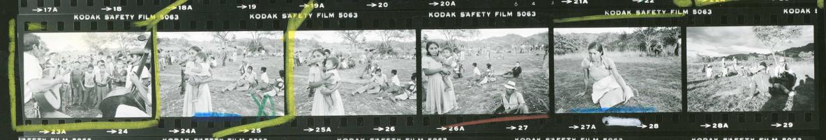 Susan Meiselas intenta reconocer el territorio. Repasa con la mirada todo a lo largo de la calle principal de El Mozote y dice al fin: “No recuerdo haber entrado por aquí”. Saca de su bolso las hojas de contacto de los rollos con las fotografías que tomó en enero de 1982, durante su primer y determinante viaje a este lugar. Cuadros en blanco y negro de los cuerpos de algunos de los pobladores que habitaron El Mozote y caseríos aledaños. Restos humanos pudriéndose entre estos mismos caminos, tal como ella los encontró dos semanas después de que el Batallón Atlacatl del ejército salvadoreño asesinara aquí a casi mil personas, en diciembre de 1981. Susan Meiselas ha vuelto hoy a la escena del crimen.